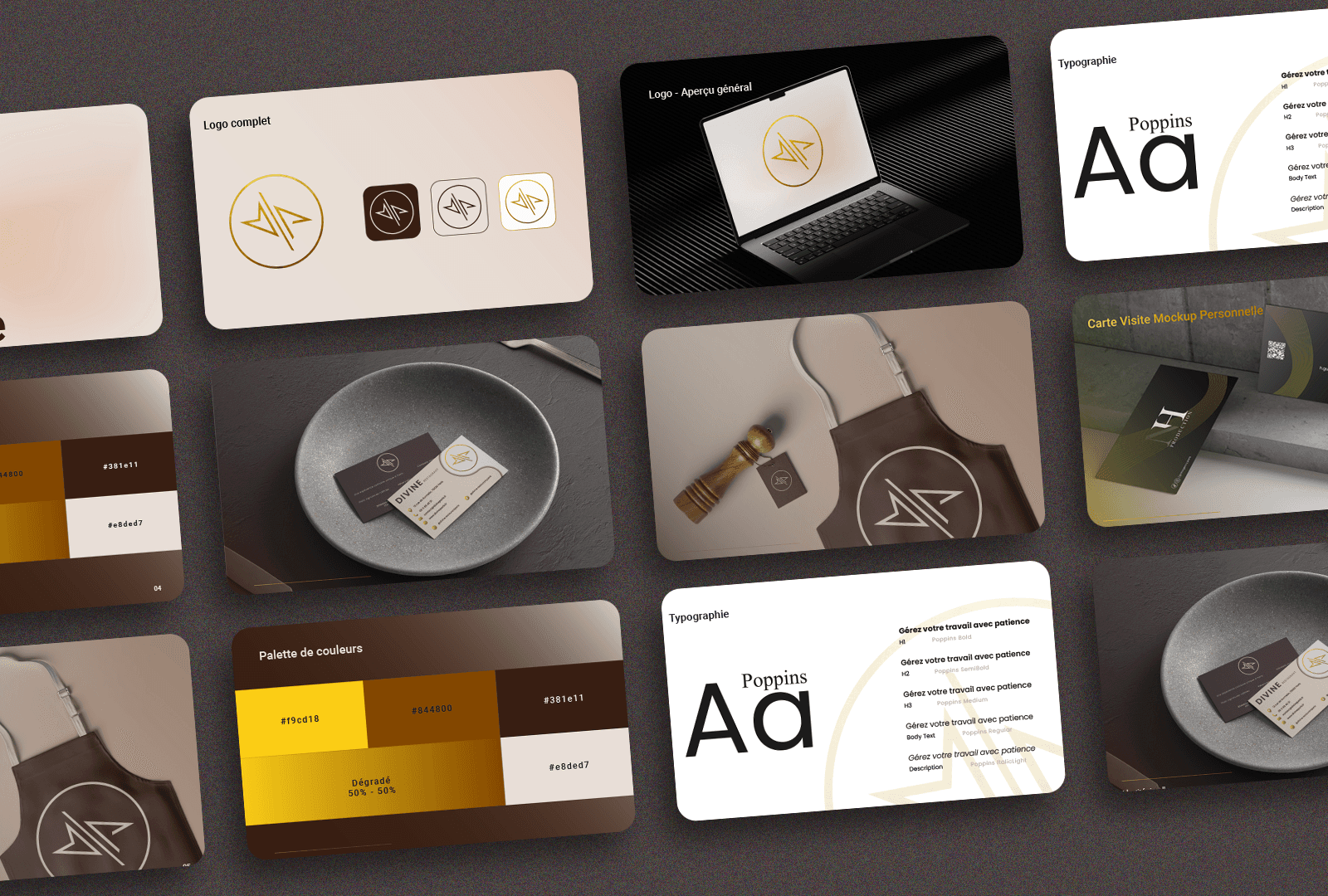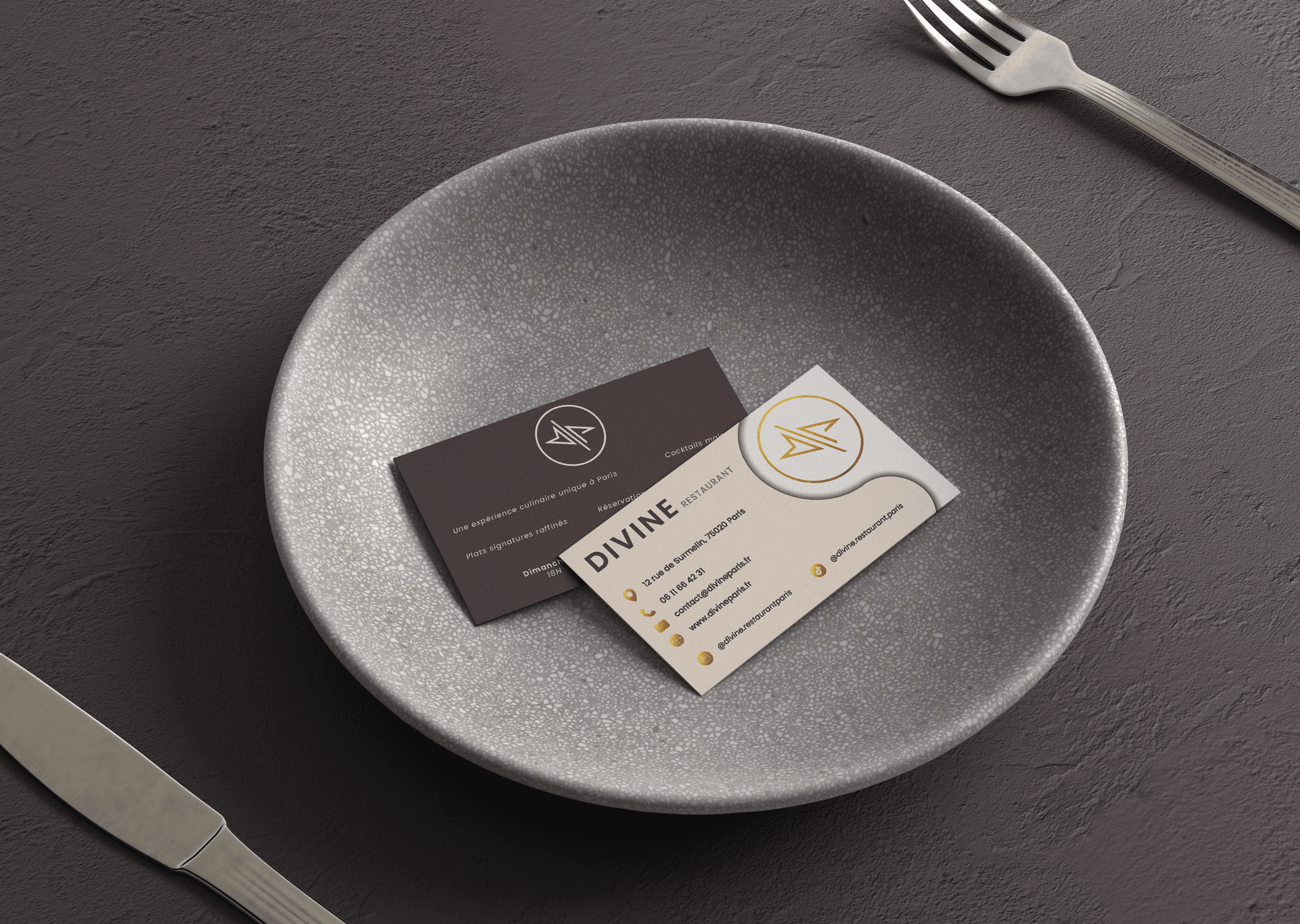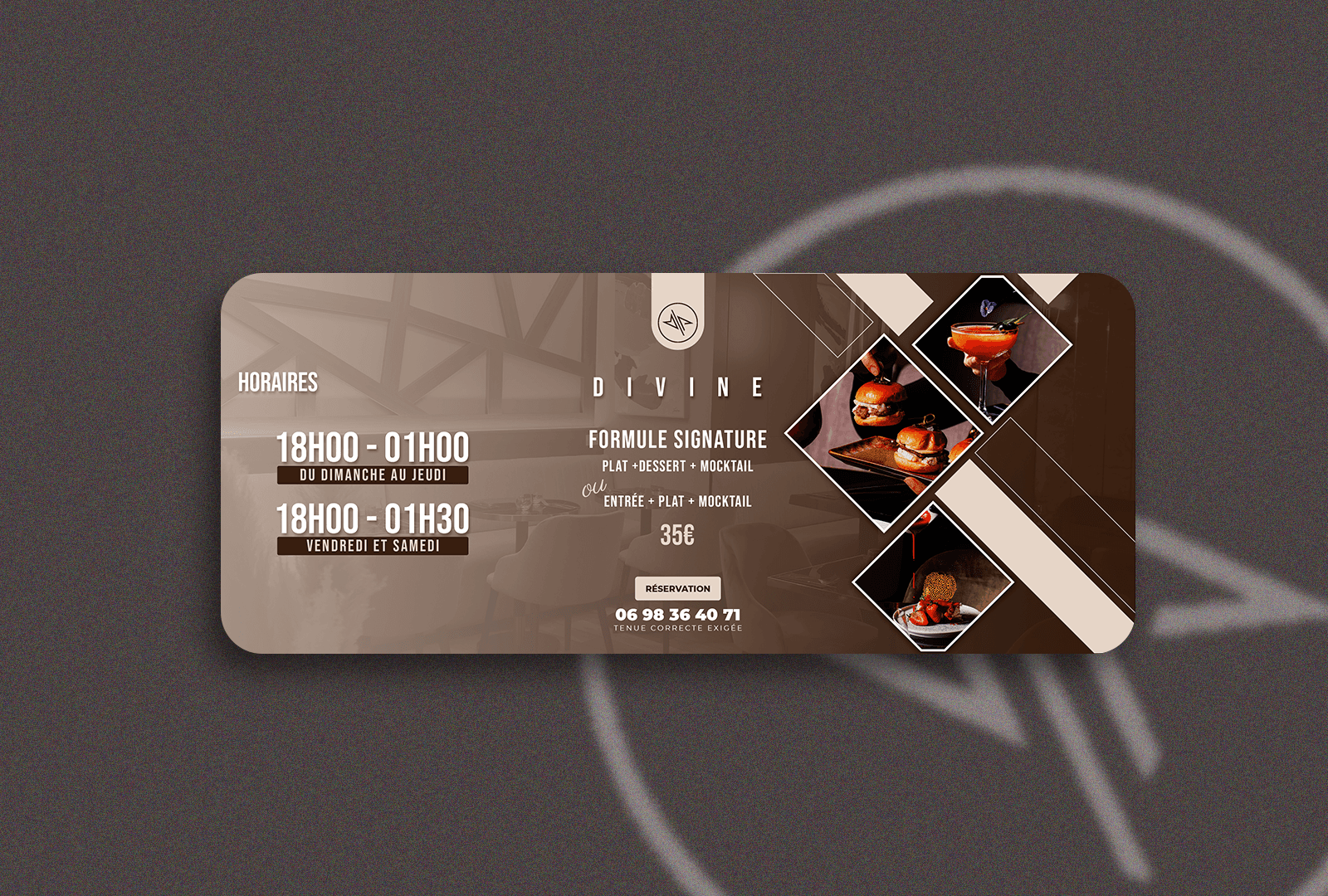 Divine Paris is a restaurant for which I created a complete visual identity — including Instagram banners, logo vectorization, highlights, photo retouching, business cards, and a full graphic charter to unify its brand image across all platforms.