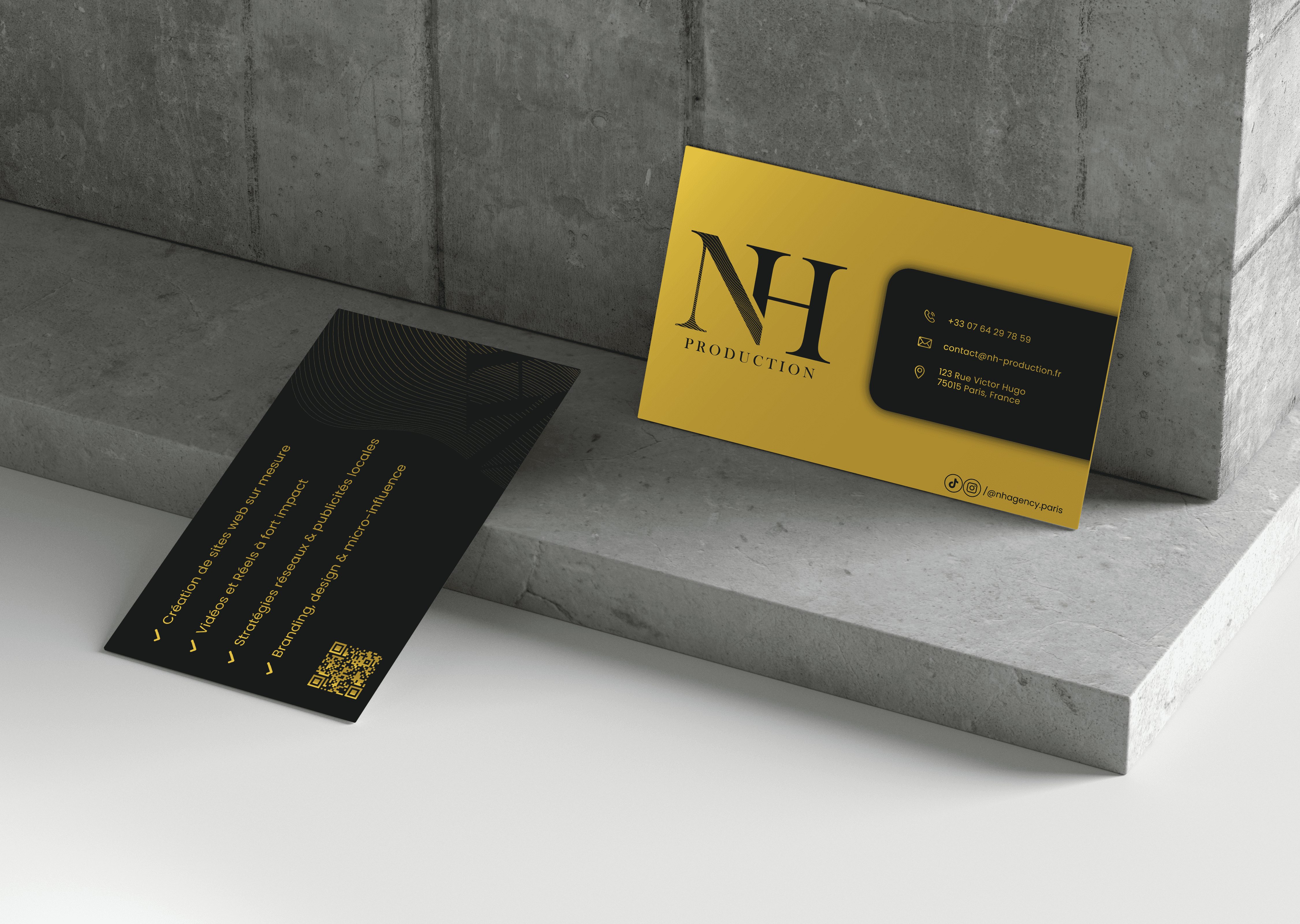 NH Production is a startup offering website creation and graphic design services, including business cards, flyers, and other visual assets for its clients. I collaborated with them to enhance their design quality and online presence.
